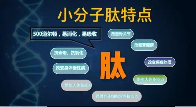 肽:一款产品通调全身,五脏六腑都能得健康,男女老少全适宜。听着是不是有点太神奇了。如果您觉得神奇是正常的,因为95%的人还不了解肽。 每天两包小分子肽,喝出人生好状态!
