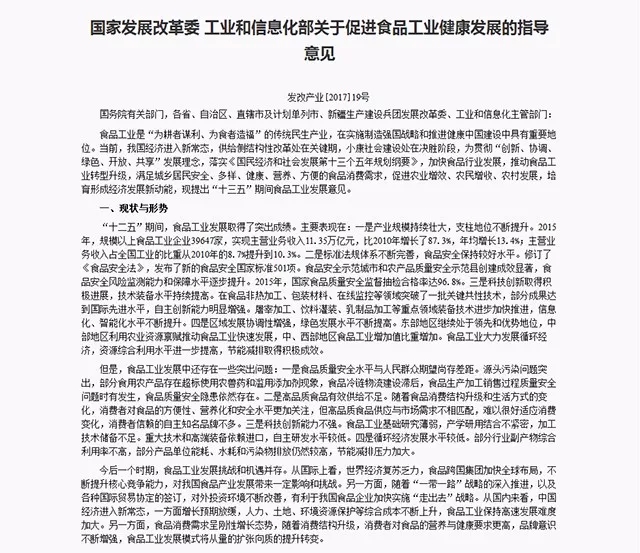 ![]() 2017年,国家发展改革委工业和信息化部关于促进食品工业健康发展的指导意见中,其中第三项“主要任务”中明确指出,在“十三五”期间要加快发展功能性蛋白和生物活性肽等健康食品。值得注意的是,这是国家首次在政策层面明确提出将生物活性肽产业纳入加快发展位置。